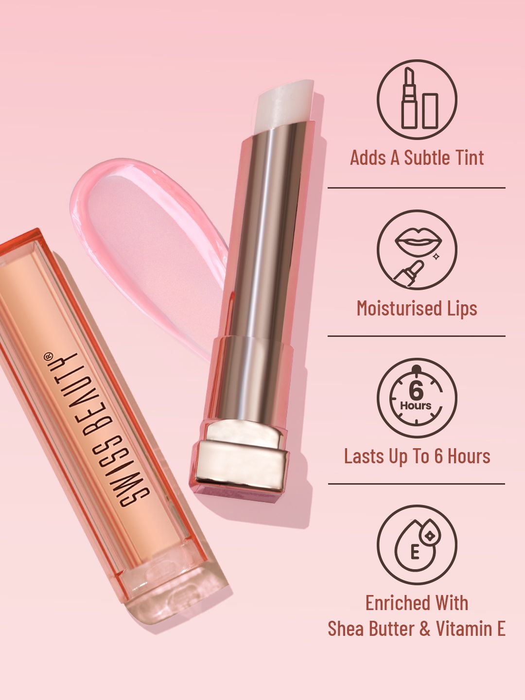 Twist and glide the lip balm gently on your lips for tinted & moisturized lips.